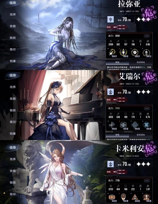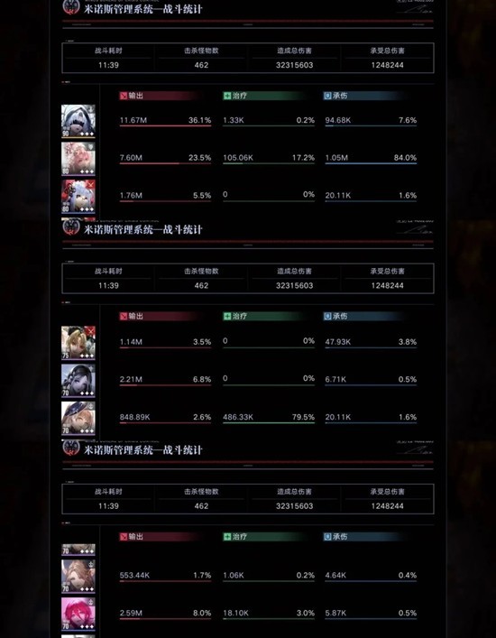 大部分练度不是很重要,比较重要的角色是伯爵和nox,其他都是破核,回血,debuff工具人