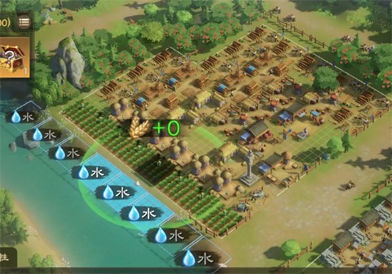 知春苑的地形特点是右方与下方富含石材资源,左下角则拥有大面积水域。根据这一分布情况,可在右下区域优先设置凿石所,用于开采石料。左下水资源附近布置田庄,保障农田供给。外围资源点覆盖完毕后,再向内部扩展建造其他功能性建筑,形成完整的生产体系。