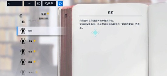 莉莉身穿学院风制服,佩戴书店工作证,手中常握一本书籍,整体形象充满知性与亲和力。她的身份设定为突然出现在世界中的神秘人物,宣称要守护命运的轨迹。这一背景赋予她超越普通NPC的特殊地位。作为丽丽书店的经营者,她频繁出现在各类系统界面中,为玩家提供指引服务,也因此更容易积累玩家的好感度。