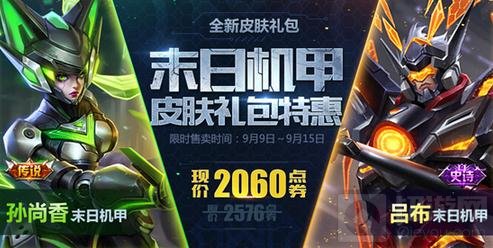 包含孙尚香和吕布末日机甲系列的皮肤礼包将同步上架,限时折扣仅2060点券。我们将在更新后对吕布末日机甲皮肤语音进行优化~