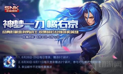 1. SNK男神:橘右京登场,部分参与活动的召唤师本周将成功兑换