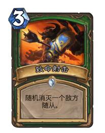 关门放狗:对面铺场后用效果拔群,破火妖法镜像护怪,破对面猎人的冰冻陷阱为自己的狮子开路,对一血的怪补刀,拉一场狗突脸(3费打脸打4就不亏),用法灵活,但是一张足矣。