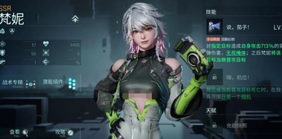 梵妮是镭明闪击中公认的T0级别远程输出角色之一。她具备极强的单体爆发能力,能够对指定目标造成基于自身攻击倍率高达713%的真实伤害,并且无视掩体效果。在成功命中后,梵妮还能持续追击同一目标,确保高额伤害完整打出。这一机制使她在面对高血量精英单位或BOSS时表现出色,成为推图与副本中的核心输出选择。