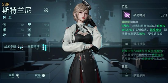 斯特兰妮同样是镭明闪击中表现亮眼的攻速流输出角色。她的技能可对当前目标造成攻击倍率221%的真实伤害,并且无视掩体。在技能释放期间,斯特兰妮自身的暴击率还会提升15%,进一步增强输出稳定性。凭借较快的攻击速度叠加暴击收益,她在连续作战中能迅速累积伤害,适合搭配增益辅助形成高效输出循环。