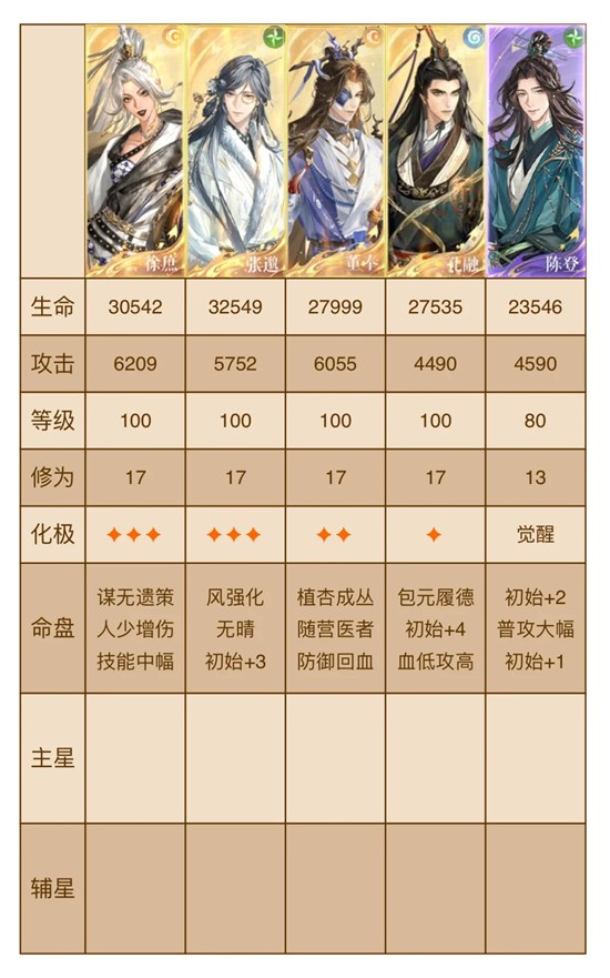 4. 该配队打法我是选择陈登和董奉作为【鬼魂化】密探的,因为孔融属性克制干吉属性可能不太好控制血量