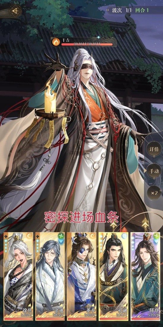 1. 这关得打死干吉3次,干吉死亡会给我方血量最低的密探附加【鬼魂化】,干吉前2次死亡后附加【鬼魂化】不能是我方同一个密探