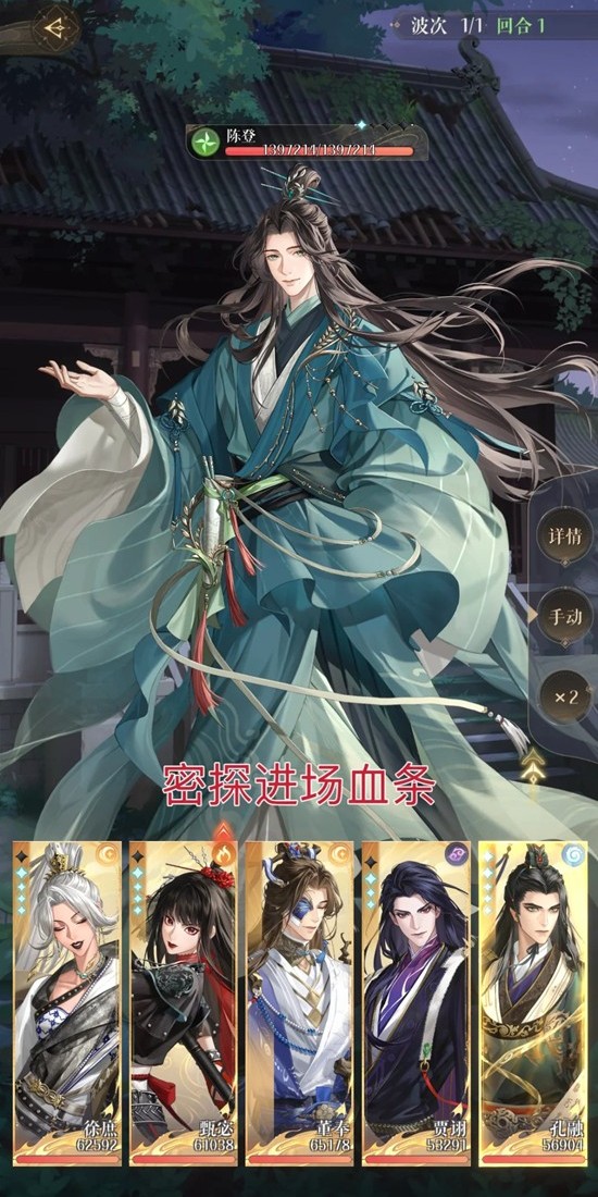 1. 陈登3回合以及后面每10回合都会召唤2个渔夫上场(3,13,23回合),打人比较痛,因此该配队打法建议在13回合前打死陈登,否则会站不住