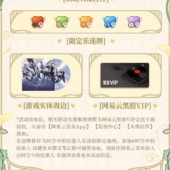 小伙伴们需要注意的是,活动结束后,相关联动头像框将调整为网易云音乐黑胶VIP会员专属装扮,可在【网易云音乐App】-【装扮中心】-【头像挂件】获取。
