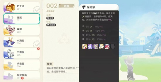娓娓的个人特性为“探险家”,这一特质使她在开放世界探索中尤为突出。每次普攻后均可提升攻速,最多叠加6层,满层后还将激活全能吸血效果,最高可达45%吸血比例。这意味着在长时间战斗或连续清怪过程中,娓娓不仅能维持高效输出,还能依靠吸血保障生存能力。对于偏好野外探索、挑战隐藏区域的玩家来说,这一特性极大增强了续航与安全性,也让娓娓成为崩坏因缘精灵中少有的兼顾战斗与探索双重功能的角色。