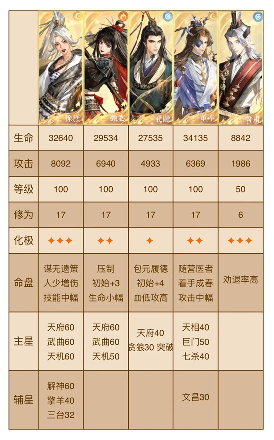 每个宝宝等级命盘练度不一样,可以参考自行调整