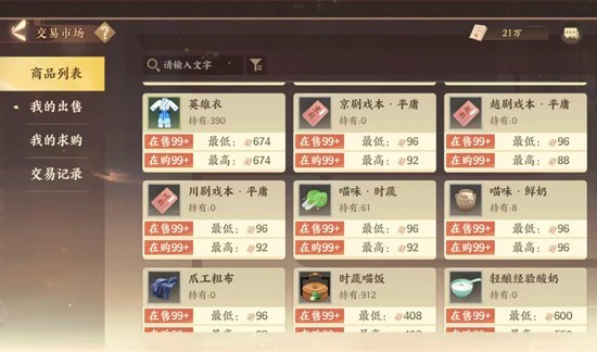 可以根据自己缺少的材料进行采购,有部分材料市场是0,就算没有也可以进行求购,有使君上架了这种材料会根据排队先后顺序和出价高低慢慢卖给各位使君,只要肯排队总会买到的,不用担心某种材料一直缺货