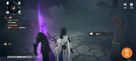 光雾林的主线谜题需在挖掘完前方石头后,与出现的小孩人影对话触发。挖掘任务需缓慢操作,注意提示点的位置。完成挖掘并与人影交谈后,将进入与师兄的战斗环节。此战建议携带具备涅槃机制的角色,并确保队伍生存能力。