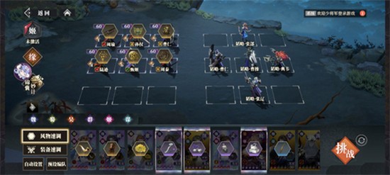 风物选择上,醉月无顾必须满星,这是提升我方生存与输出节奏的关键。其他如无间、岳峙、空谷、片石等风物有即可,星级影响不大。曹仁佩戴任意防御型风物均可胜任,若无橙色品质可用紫色三振律替代,确保其在前排的承伤效率和技能释放稳定性。