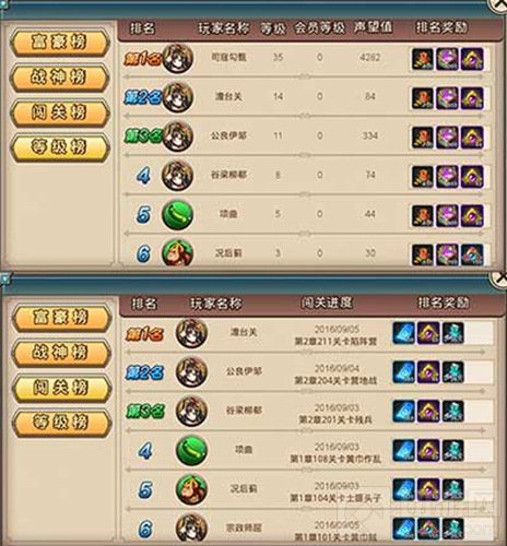 在游戏中每个玩家都想成为一个叱诧风云的焦点人物,排行榜系统满足了友友这个方面的需求。在游戏中排行榜上将显示所有你已添加的好友的排行,在排行榜中,友友们点进去之后,可以看到几个子栏目,分别是:富豪榜、战神榜、闯关榜、等级榜。其中,战神榜这一项,主要是根据全区玩家的战斗力多少进行排行,战斗力最高的当然就是排行榜的额第一了。所以,玩家们应努力提升战斗力,使自己的排名尽量靠前。