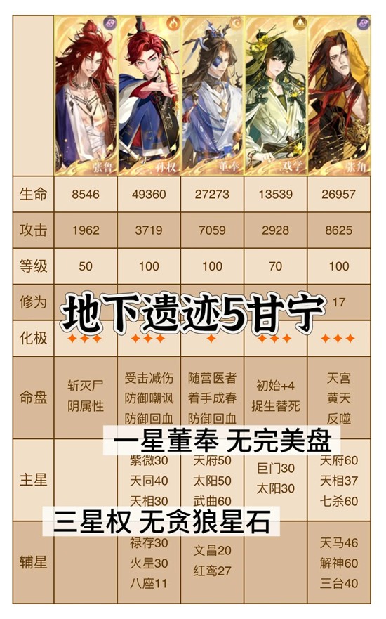 以上就是如鸢左慈地宫地下遗迹5,一星无完美盘董奉不赌攻略的全部内容了,更多游戏资讯,攻略内容敬请关注切游网,您的支持是我们努力的动力!