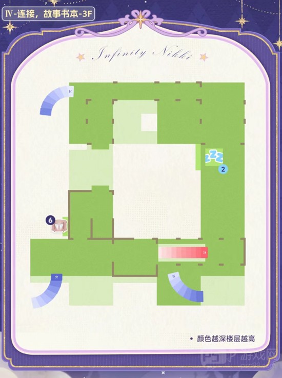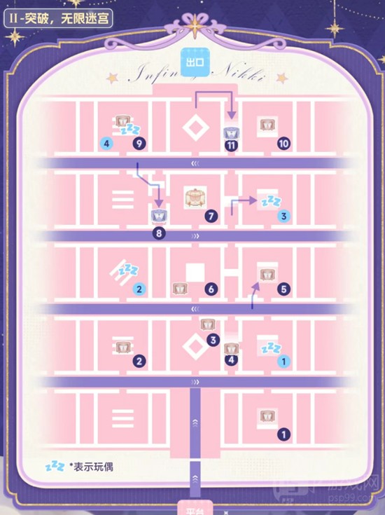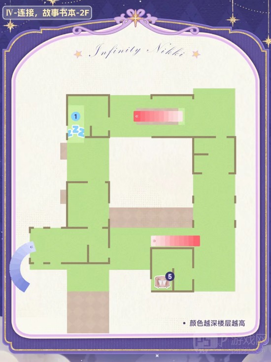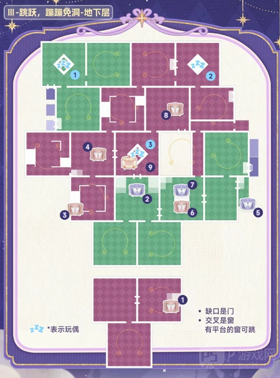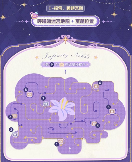 第一个睡眠宫殿区域结构简单,属于引导性质的地图。该区域没有复杂的路径设计,玩偶位置显眼,宝箱也直接暴露在主路线上,无需绕行或解谜即可获取。因此该部分未在地图中标注具体路线。