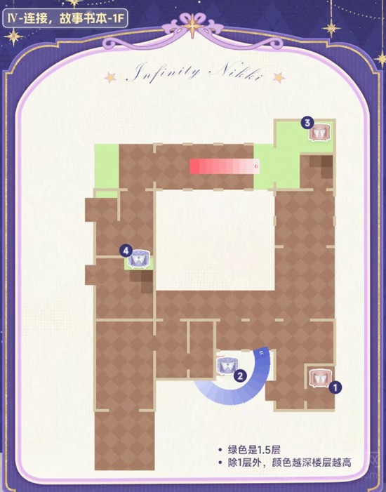 第四个迷宫名为“连接,故事书本”,以书籍翻页的形式切换场景。玩家每通过一个章节,地图结构就会发生变化。该区域的宝箱通常出现在章节转换后的新增区域中,需留意画面切换后的环境变化,及时探索新开放的空间。
