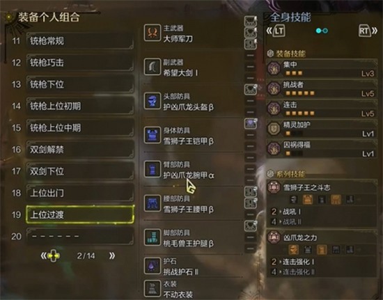 进入上位阶段后,早期遭遇的桃毛兽王成为重要素材来源。通过制作两件桃毛兽王装备并与之前的凶爪龙套装搭配,可将连击技能提升至满级五层。这一阶段的组合兼顾了输出节奏与资源获取效率,适合大多数常规狩猎场景。
