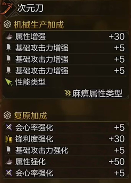 在怪物猎人荒野中,太刀作为高机动性与高斩味需求的近战武器,其流畅的居合斩与气刃斩机制深受玩家喜爱。选择以麻痹属性为输出辅助手段的流派时,武器推荐使用次元刀,该武器具备麻痹属性1点以及20%的会心率加成,基础攻击力优秀,适合搭配高会心与攻击强化类技能,为后续的百会状态积累创造条件。