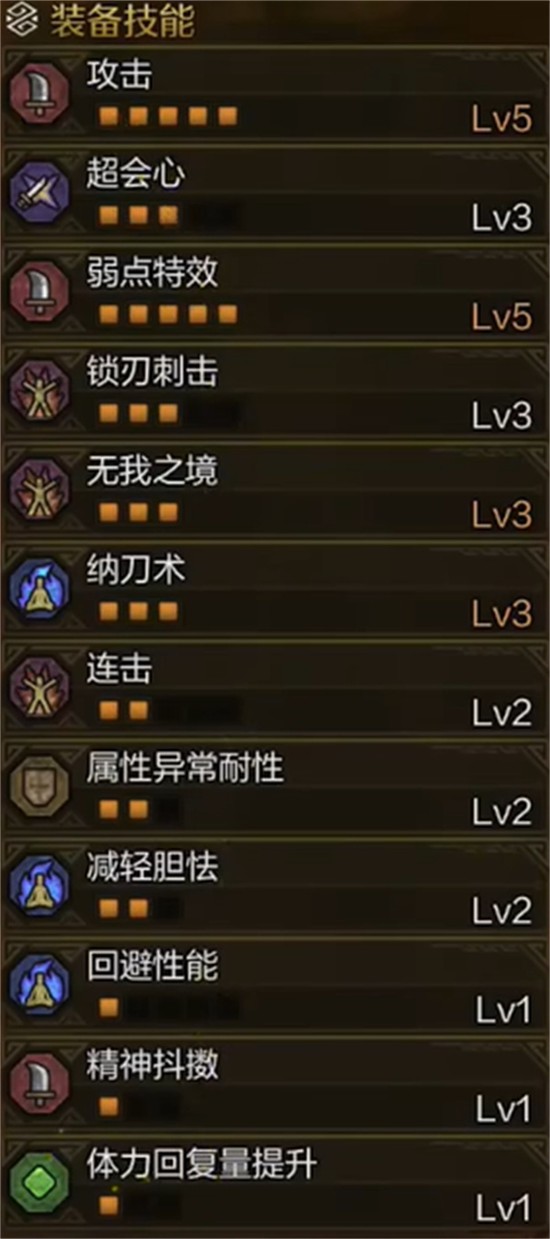腰部位置选择护锁刃龙腰甲β,其携带浑身珠II与耐冲珠I,浑身技能可延长气刃斩的斩味消耗周期,减少频繁磨刀带来的节奏断裂。耐冲珠则用于缓解部分怪物震地或冲击波类技能带来的视角晃动,提升操作稳定性,尤其在对抗古龙种时具有实际作用。