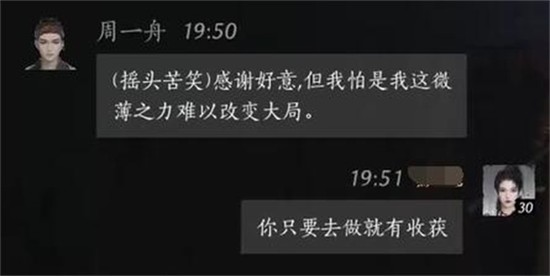 这句鼓励性的话语进一步激励了周一舟。在燕云十六声的叙事体系里,这种正向反馈常常能解锁后续情节。该句强调行动的重要性,符合游戏整体倡导的主动探索精神。
