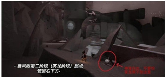 第二个神坛位于暴风眼第二阶段冥龙区域。玩家进入该区域后,在起点管道的右下方就能发现这座神坛。这个位置相对安全,玩家不必担心被冥龙发现,可以安心进行神坛的互动操作。