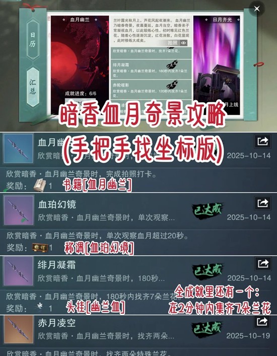 以上就是一梦江湖暗香血月兰花坐标攻略,全成就及逃课方法的全部内容了,更多游戏资讯,攻略内容敬请关注切游网,您的支持是我们努力的动力!