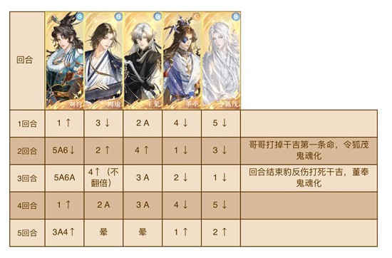 弱点:弱点来自于鬼魂化密探放技能,干吉需要弱点层数为2时被打死才能被彻底消灭,否则会一直复活,叠加的弱点层数会在两回合内清零(所以最好控制成同一回合有两个鬼魂化密探且这两个密探可放技能且C放大可收割干吉)