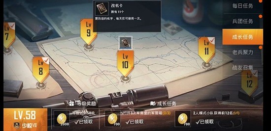 在和平精英里面玩家可以通过提升等级来获取免费改名卡。当玩家将游戏等级提升至10级时,系统会赠送一张改名卡作为奖励。这个等级任务需要玩家参与多场和平精英对战,通过完成成长任务来积累经验值,虽然需要一定的时间投入,但确实是一个稳定的获取途径。