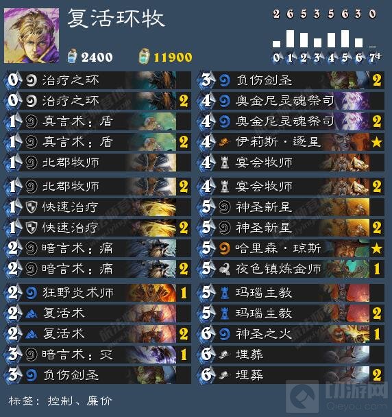 这套牧师,平心而论,是本次三套卡组里笔者个人最喜欢的一套~ 很好地平衡了强度和乐趣,强起来真的强,而且一点也不乏味。而且这套有一种构筑上的美感,less is more,廉价、简洁、灵活、稳定又不无脑,曲线优美、combo众多又不难实现,站场、过牌、控场、清场、苟活、斩杀、拖后期各系统应有尽有而且互相结合充分,实操中绝无违和感,同时25张职业卡极好地体现了牧师这个职业的特性,并且没有使用奇奇怪怪又笨重的强力单卡或者什么龙呀古神呀之类系统。天梯上形形色色的复活牧不在少数,而带的单卡和组件是花样百出大相径庭,但请相信我,这一套是Best of all。
