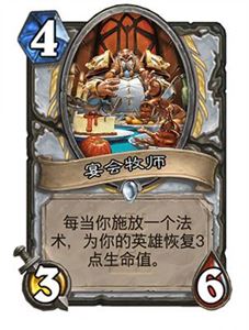 另一种传统的控制卡组对中快速卡组赢法也依然常常出现,人家上什么我解什么, 不断奶自己苟活并找机会过牌,耗光对面手牌劝退。这种方式也并没有看起来那么难,牧师6张常用单解我们带了5张还外加一张神火,AOE除了新星两发奥金尼两套还带了个炎术士,宴会牧师加双快疗、炼金师、神火和哈里森也是应对打脸职业苟活的充足配置。