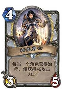 和上面的馆长鱼人骑有点像,新卡加入后的复活环牧也可以理解为对传统控制牧(Control Priest 国服惯称环牧)的中速化。它继承了老环牧的韧性和操作感,又额外具有了中期强大的场面压迫力。比起上面的鱼人骑,本套向中速卡组方向走得更远:先手3费后手两费上剑圣,过渡1-2回合后5费准时复活剑圣,场面不虚任何中速卡组;并且在将近一半的对局中是使用节奏卡组的方式取胜:1-2回合内复活并拍出3个以上剑圣或者卡组里随便什么中期生物,由于牧师技能和buff法术的存在对手几乎不可能迅速夺回场面,然后在接下来几个回合内连续踹脸或配合奥金尼快疗奶冲抢死。