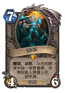 整套卡组现在的过牌体系,就笔者自身反复调整来看,基本上是不多不少刚刚好的,多一张严正容易卡手;但是愤怒之锤这个卡位是整套卡组里我调整最多遍的,先后试过苦痛、铜须、集结之刃和女城管,总体感觉半斤八两,而且过牌也好法术也好武器也好,都是牵一发动全身,还请读者自己根据实战感受掂量。和馆长联动的牌里,科多一张足够,它已经没有两个月前刚被重新开发出来时那么出人意料地厉害了。