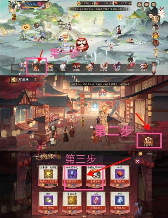 第二步点击千物宝库选项,更新借出式神后可获得积分,每周可以用积分兑换一张蓝票