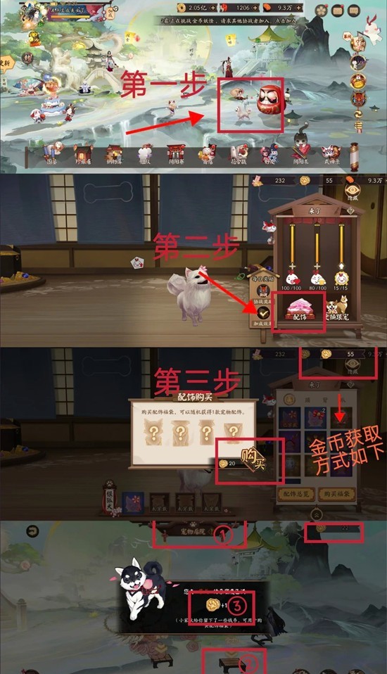 (配饰的金币获取方式在宠物后院放东西吸引小宠物到来,已经有对应宠物就可以转换成金币,没有对应宠物就可以得到对应宠物碎片)