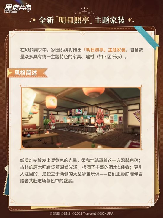 星痕共鸣S2赛季即将到来,游戏也官宣了新赛季全新主题家装明日照亭,这一主题家装将在明日的更新后正式与玩家们见面,为冒险者的家园增添一抹独特的风格和温馨,下面跟随小编的脚步来一起看看吧。