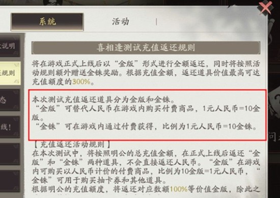 充值返还涉及两种道具:金版和金铢。