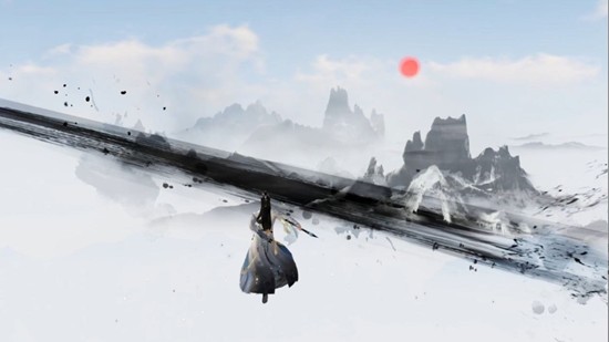 视频中的视觉效果堪称一流。墨迹在空中飞舞时,不仅有细腻的墨色变化,还能看到墨滴在空中散开的细节,极具真实感和艺术感。同时,轻功飞行过程中,场景的切换和光影效果也处理得十分自然,让玩家仿佛身临其境,感受到了江湖的广阔与壮美。