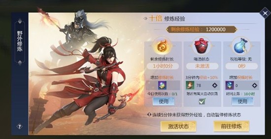 如果玩家在野外修炼当中的十倍经验值非常充足的话,建议选择该方式来进行挂机战斗。获取到的经验值可以快速帮助角色升级,每一次升级角色都将迎来高额的战斗力增加。这是剑侠世界3中提升战力的有效途径之一。