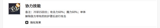 协力技能方面,亚雷克德拉拥有一个60%攻魔加成的单体攻击技能,同时具备破除敌方护盾的效果。一旦成功解除防护罩,后续攻击将转化为真实伤害,无视防御。这一特性让他在对抗依赖护盾机制的敌人时尤为出色,建议在战斗中优先使用该技能为团队打开输出窗口,提升整体伤害效率。