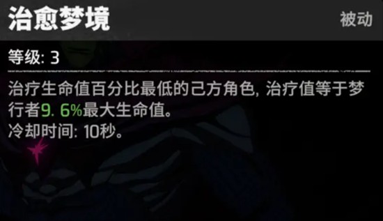 这是梦行者的核心被动技能,每十秒可自动触发一次。当队伍中有生命值百分比最低的友方单位时,梦行者将为其恢复相当于自身最大生命值一定比例的血量。该技能无需手动释放,能够在关键时刻挽救濒死队友。同时,其治疗效果与梦行者自身的生命值挂钩,因此提升生存属性能显著增强其辅助能力,在漫威秘法狂潮的持久战中尤为关键。