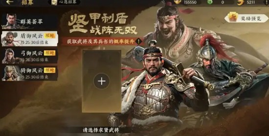当玩家进入中期发展阶段,定向招募卡池将成为重点。该卡池按赛季划分,每赛季开放三轮,每轮聚焦特定兵种主题,如弓兵、骑兵或盾兵阵容。在定向卡池中,玩家可使用心愿锁定功能,指定一名希望获取的武将,系统会提升该武将的出现概率。这一机制大大提高了目标武将的获取效率,尤其适合想要组建特定阵容的玩家。