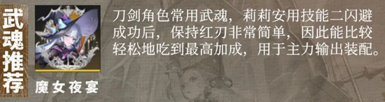 刀剑系角色莉莉安的推荐武魂为魔女夜宴。该武魂在技能2释放后可提升闪避成功率,并维持红人状态的持续输出能力。红人状态下角色攻击频率与伤害倍率均有提升,配合魔女夜宴的加成机制,能在高风险战斗中实现稳定输出与生存兼顾的效果。这一组合尤其适合面对多段连击或高频率攻击的敌人时使用。