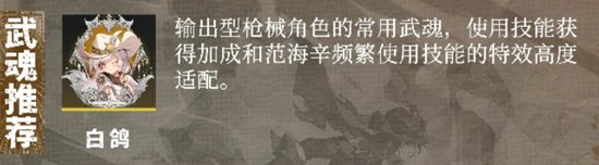 枪械系角色范海辛的最佳搭配为白鸽武魂。该武魂强调技能释放后的高频次爆发概率,与范海辛依赖技能连发的输出模式高度契合。范海辛的技能具备快速冷却与多段命中特性,白鸽能在命中后触发额外伤害或状态叠加,进一步放大其持续输出能力。在面对群怪或移动目标时,这一组合表现尤为突出。