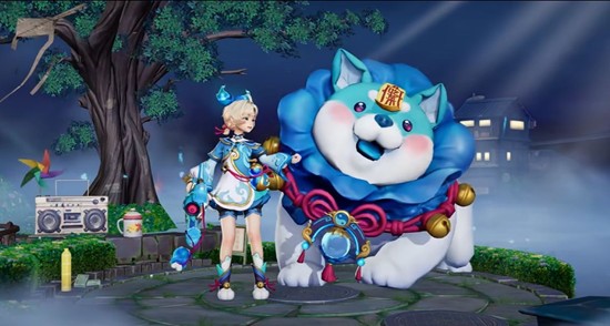 这款阿古朵·夜趣星史诗皮肤,以惊奇夜游园会为主题,将灵动的蓝白色作为主色调,巧妙地融入了彼岸红绳与金色铜铃等元素,营造出一种奇妙搞怪的灵异氛围,同时又不失鲜活可爱的国风韵味。阿古朵头顶浅金色短发,搭配红绳和跃动的灵火造型狗耳发饰,显得灵动俏皮。