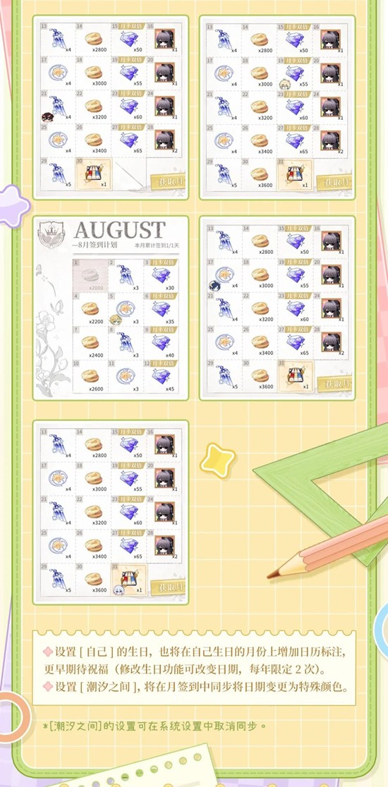 ◆设置【潮汐之间],将在月签到中同步将日期变更为特殊颜色