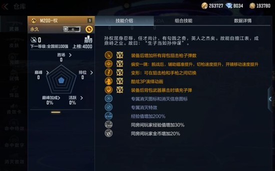 另外M200-权还有组合套装技能,权套装可以为主弹匣子弹数+2。此外,它与步练师还拥有羁绊效果加持,在爆破模式中敌人出现时触发心跳提示,可以帮助你更快地发现敌人。