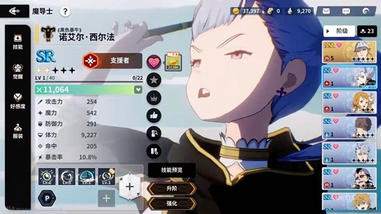角色之间的羁绊关系会触发连携技能,当特定角色共同上场时,技能效果将得到强化。这一机制进一步提升了队伍搭配的深度。理想的阵容结构应包含坦克、输出、减益和辅助四类角色。初期系统赠送亚斯塔、尤诺、夏洛特和诺艾尔四位角色,这套组合在前期具备较强适应性,能够应对多数基础关卡挑战。