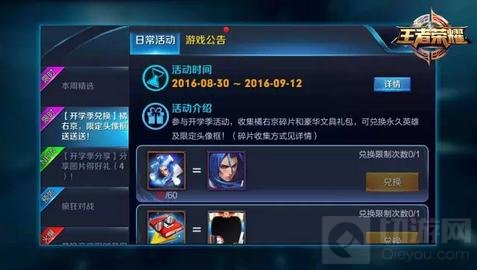 在游戏内公告栏处有详细的橘右京获取方式哦!不用金币,不需要点券,只需登录和进行对局,男神就能带回家哦!碎片同样可以兑换其他的SNK系列的英雄,不容错过哦!