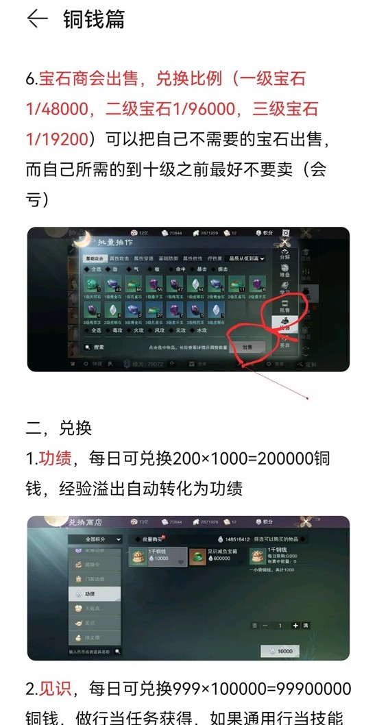 6.宝石商会出售,兑换比例(一级宝石1/48000,二级宝石1/96000,三级宝石1/19200)可以把自己不需要的宝石出售而自己所需的到十级之前最好不要卖